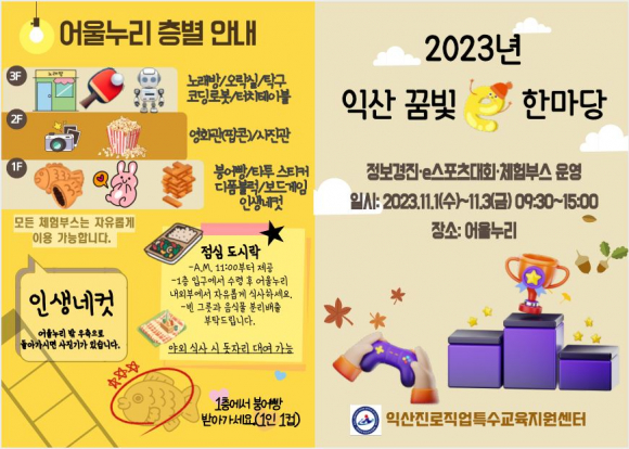 Àͻ걳À°Áö¿øÃ»(±³À°Àå ±èº¹Èñ)Àº 11¿ù 1ÀϺÎÅÍ 3ÀϱîÁö Ư¼ö±³À°´ë»ó ÇлýµéÀÇ Á¤º¸È ´É·Â½ÅÀå°ú °ÇÀüÇÑ ¿©°¡»ýȰ °³¹ßÀ» À§ÇØ ¡®2023³â ÀÍ»ê ²ÞºûeÇѸ¶´ç¡¯À» °³ÃÖÇÑ´Ù°í ¹àÇû´Ù.