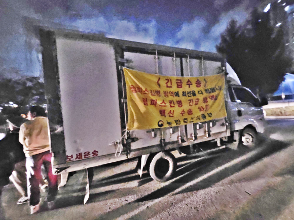 ¶ÇÇÑ ¹æ¿ªÀåºñ°¡ ¾ø´Â ¼Ò »çÀ° ³óÀå¿¡ ¹æ¿ª±â¸¦ ´ë¿©ÇÏ°í ¹æ¿ª ¾àǰÀ» Áö¿øÇÏ´Â µî È®»ê¹æÁö¸¦ À§ÇÏ¿© ÃÑ·ÂÀ» ±â¿ïÀ̰í ÀÖ´Ù.