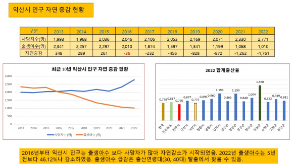 ÀÍ»êÁö¿ª Àα¸ µ¥µåÅ©·Î½º Çö»óÀº 2016³âºÎÅÍ ³ªÅ¸³ª ±×ÇØ 36¸íÀ̾ú´ø ÀÚ¿¬°¨¼ÒÀοøÀÌ Áö³ÇØ¿¡´Â 1761¸íÀ¸·Î Áõ°¡Çß´Ù.