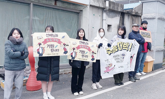 ¼ö´ÉÇÑÆÄ´Â ¾øÁö¸¸ ¿µ»ó 6~7µµ ´Ù¼Ò ½Ò½ÒÇÑ ³¯¾¾¼Ó¿¡ ºÎ¸ð µîÀÇ Â÷·®¿¡¼ ³»·Á ¿ÀÀü 10ºÐ±îÁö ÁöÁ¤µÈ ½ÃÇèÀåÀ¸·Î ÀÔ½ÇÇϱâ À§ÇØ ¹ß°ÉÀ½ ÀçÃËÇß°í °¢ °í±³ ÀçÇлý°ú Çкθ𡤱³»çµéÀº ½ÃÇèÀå ÀÔ±¸¿¡¼ ÀÀ¿ø¹®±¸°¡ ÀûÈù Ç÷¡Ä«µå¸¦ µé°Å³ª ¹Ú¼ö¸¦ Ä¡¸é¼ ¼öÇè»ýµéÀ» ÀÀ¿øÇϱ⠻ç±â¸¦ ºÏµ¸¾ÆÁִ dz°æÀÌ ¿¬ÃâÇß´Ù.