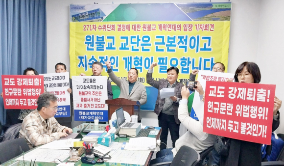 ¿øºÒ±³ °³Çõ¿¬´ë(ÀÌÇÏ °³Çõ¿¬´ë)´Â À̳¯ ¡°40³â ±³È Á¤Ã¼¿Í Ãâ°¡ÀÚ À§ÁÖÀÇ ±³´Ü ¿î¿µÀ¸·Î ÅÍÁ®³ª¿Â ¡®Áõº¸ÆÇ Àü¼ Æó±â»ç°Ç µî ±³´ÜÀû ÆóÇØ¸¦ ±Øº¹Çϱâ À§ÇØ ±³´Ü Çõ½ÅÀ» ¿ä±¸ÇÑ °Í°ú °ü·Ã, 271Â÷ Á¤±â ¼öÀ§´ÜÀ§´Â ºÀµµ¡¤È£¹ý ¼öÀ§´ÜÀ» ÆóÁöÇϰí Àç°¡¼öÀ§´ÜÀ» ½Å¼³ÇÏ´Â Çõ½Å¾ÈÀ» ¼ö¿ëÇßÁö¸¸ ½Ã±ÞÈ÷ ÇØ°áÇØ¾ß ÇÒ 6°¡Áö Çö¾È¹®Á¦°¡ ÀÖ´Ù¡±°í ÀüÁ¦Çß´Ù.