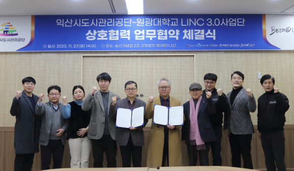 ¿ø±¤´ëÇб³(ÃÑÀå ¹Ú¼ºÅÂ) LINC 3.0»ç¾÷´ÜÀÌ ÀÍ»ê½Ãµµ½Ã°ü¸®°ø´Ü°ú »óÈ£Çù·Â ¾÷¹«Çù¾àÀ» ü°áÇϰí, Áö¿ª»çȸ ¹× »ê¾÷ü¿Í »óÈ£ ±³·ù¸¦ ÅëÇØ ÀüºÏ±Ç Áö¡¤»ê¡¤ÇÐ Çù·Â ³×Æ®¿öÅ© È®»ê¿¡ ¾ÕÀå¼°í ÀÖ´Ù.