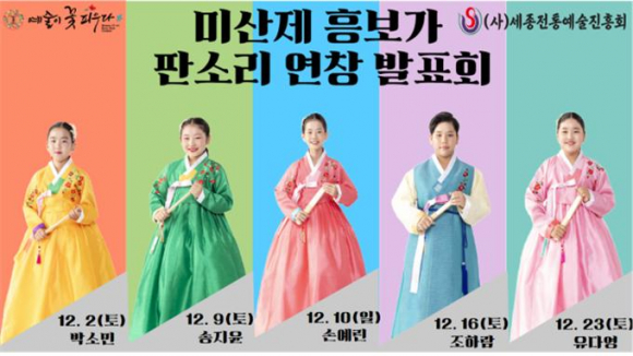 (»ç)¼¼Á¾ÀüÅ뿹¼úÁøÈïȸ ÁÖ°ü, (À¯)¿¹¼úÀÌ ²É ÇÇ¿ì´Ù°¡ ÈÄ¿øÇÏ´Â ºû¼Ò¸® ¾î¸°ÀÌ ¿¹¼ú´ÜÀÇ ¹Ì»êÁ¦ Èﺸ°¡ ÆÇ¼Ò¸® ¿¬Ã¢¹ßǥȸ°¡ 12¿ù 2ÀϺÎÅÍ 23ÀϱîÁö ¸ÅÁÖ Åä¿äÀÏ ¿ÀÈÄ 4½Ã 30ºÐ¿¡ ÀÍ»ê ÇÔ¶óÇÑ¿Á üÇè´ÜÁö³»¿¡¼ ¿¸°´Ù.