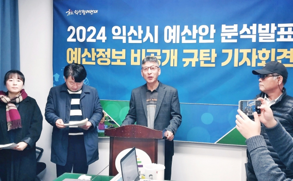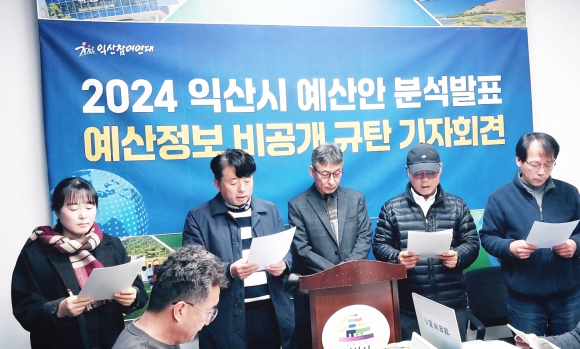 ÀÍ»êÂü¿©¿¬´ë °ü°èÀÚµéÀº À̳¯ ÀÍ»ê½Ãû ±âÀڽǿ¡¼ 2024³â ÀÍ»ê½Ã ¿¹»ê¾È ºÐ¼® ¹× ¿¹»êÁ¤º¸ ºñ°ø°³ ±Ôź ±âÀÚȸ°ßÀ» °®°í "Áö³ 9¿ù ÀÍ»ê½Ã¹Î»çȸ´ÜüÇùÀÇȸ Á¤Ã¥°£´ãȸ Åä·Ð¿¡¼ ¿¹»ê¾È ¿¢¼¿ ÆÄÀÏ °ø°³¸¦ ¿äûÇß°í, Á¤ÇåÀ² ½ÃÀåÀº À̸¦ ¾à¼ÓÇß´Ù"¸ç "±×·¯³ª ½Ã´Â ¹ýÀû ±Ù°Å ¾ø¾î °ø°³ ºÒ°¡ ÀÔÀåÀ» ³»³ù´Ù"°í ÀüÁ¦Çß´Ù.