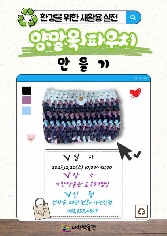 ÀÍ»ê½Ã ¸¶Çѹڹ°°üÀÌ 12¿ù ¹®È°¡ ÀÖ´Â ³¯À» ¸Â¾Æ ȯ°æº¸È£¸¦ À§ÇÑ »õȰ¿ë(Up-cycling) °ø¿¹ üÇèÇÁ·Î±×·¥ ¼ö°»ýÀ» ¸ðÁýÇÑ´Ù.