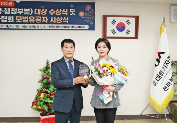 ÀÍ»ê½ÃÀÇȸ ¿ÀÀÓ¼± ÀÇ¿ø(º¸°Çº¹ÁöÀ§¿øÀå)ÀÌ »ç´Ü¹ýÀÎ ´ëÇѱâÀÚÇùȸ ÀüºÏÇùȸ¿¡¼ ¼ö¿©ÇÏ´Â ¡®´ëÇѹα¹ÀÇÁ¤´ë»ó ÀÇÁ¤ºÎ¹® ´ë»ó¡¯À» ÀÌ´Þ 15ÀÏ ¼ö»óÇß´Ù.