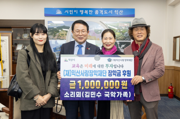 »ç´Ü¹ýÀÎ ±¹¾Ç¿¹¼ú¿ø ¼Ò¸®¸þ ±è¹Î¼ö ´ëÇ¥ °¡Á·ÀÌ Áö³ 12¿ù 29ÀÏ Áö¿ª ÇлýµéÀ» À§ÇØ ÀåÇÐ±Ý 100¸¸¿øÀ» ±âŹÇß´Ù.