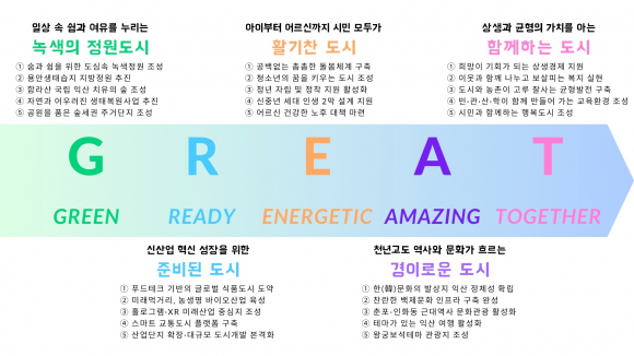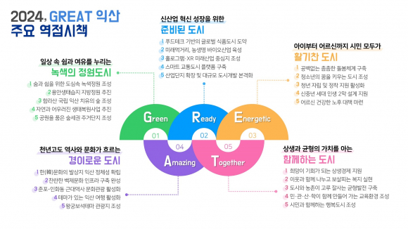 ÀÍ»ê½Ã°¡ 2024³â °©Áø³âÀ» ¸Â¾Æ 'À§´ëÇÑ µµ½Ã, ±×·¹ÀÌÆ®(GREAT,Green¡¤Ready¡¤Energetic¡¤Amazing¡¤Together) ÀÍ»ê'À¸·Î ÈûÂ÷°Ô µµ¾àÇÑ´Ù.