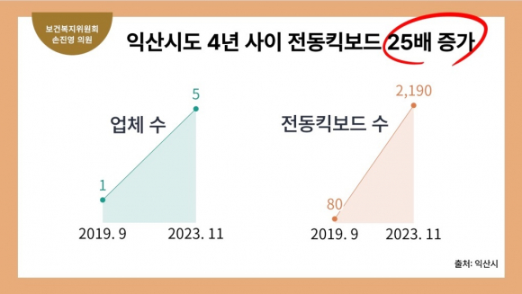 ¹ý·ü»ó ÁöÀÚü Çã°¡ ¹× µî·Ï ¾øÀÌ ¿î¿µÇÒ ¼ö ÀÖ¾î ÀÍ»ê½ÃÀÇ °æ¿ì¿¡µµ 2019³â 1°³ ¾÷ü 80´ë¿¡ ºÒ°úÇß´ø Àüµ¿Å±º¸µå°¡ 5°³ ¾÷ü 2,200´ë ÀÌ»óÀ¸·Î 4³â »çÀÌ 25¹è±îÁö Æø¹ßÀûÀ¸·Î ´Ã¾î³µ´Ù.