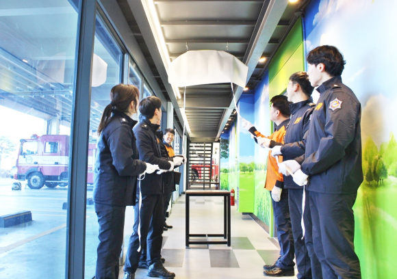 À̹ø¿¡ ¼³Ä¡ÇÑ ¸Å¿¬¹æÁö½Ã¼³ÀÎ ´Ã¼Ö±æÀº Á÷¿øÀÇ È£Èí±â °Ç° º¸È£¸¦ À§ÇØ ÇöÀçÀÇ Ã»»ç ½ÇÅ¿¡ ¾ÈÁÖÇÏÁö ¾Ê°í Â÷°í¿Í ´ë±â½ÇÀ» ¿ÏÀü ±¸È¹ÇÑ °ø°£À¸·Î ¼³Ä¡ÇßÀ¸¸ç, ´õ ³ª¾Æ°¡ Á÷¿øÀÇ ½É½Å¾ÈÁ¤À» À§ÇÑ ÀÚ¿¬º®È¿Í À½Çâ½Ã¼³À» Á¶¼ºÇß´Ù.