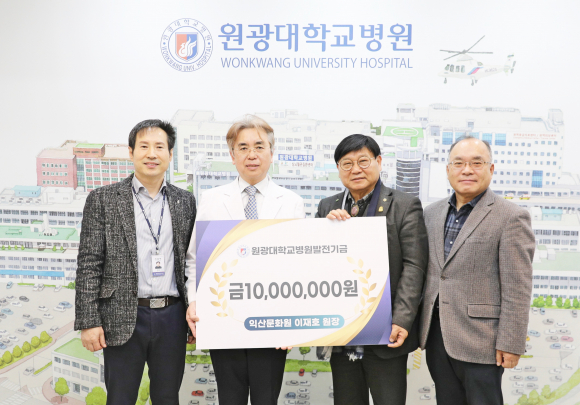 ÀÌÀçÈ£ Àͻ깮ȿø ¿øÀåÀÌ 1¿ù 31ÀÏ ¿ø±¤´ëÇб³º´¿ø(º´¿øÀå ¼ÀÏ¿µ)¿¡ ÀÇÇÐ ¹ßÀü°ú º´¿øÀÇ °æÀï·Â Çâ»óÀ» ±â¿øÇÏ¸ç ¹ßÀü±â±Ý 1,000¸¸ ¿øÀ» ±âºÎÇß´Ù.