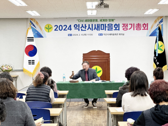 ÀÍ»ê½Ã»õ¸¶À»È¸°¡ ¡®2024³â Á¤±âÃÑȸ¡¯¸¦ ÀÌ´Þ 15ÀÏ »õ¸¶À»È¸°ü ȸÀǽǿ¡¼ °ü³» 29°³ À¾¸éµ¿ ´ëÀÇ¿øµéÀÌ Âü¼®ÇÑ °¡¿îµ¥ °³ÃÖÇϰí Á¦16´ë ȸÀå¿¡ ´Üµ¶ Ã⸶ÇÑ ¹æ¼ººÀ(58) Àü ÀÍ»ê½Ã»õ¸¶À»È¸ À̻縦 ¼±ÃâÇß´Ù.