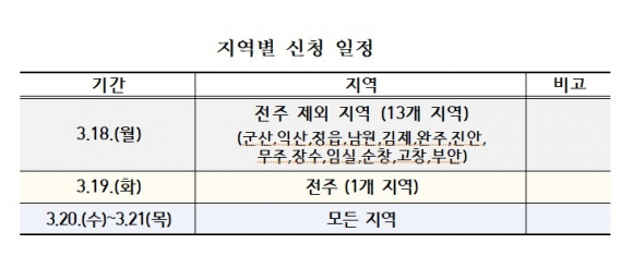 ½ÅûÀÚ µ¿½Ã Á¢¼Ó ÆøÁõ µî °úºÎÇϸ¦ ¹æÁöÇϱâ À§ÇØ ¡â3¿ù 18ÀÏ¿¡´Â ÀüÁÖ¸¦ Á¦¿ÜÇÑ 13°³ Áö¿ª ¡â19ÀÏ¿¡´Â ÀüÁÖ Áö¿ª ¡â3¿ù 20~21ÀÏ¿¡´Â ¸ðµç Áö¿ª¿¡¼ ½ÅûÇÒ ¼ö ÀÖµµ·Ï ÀÏÁ¤À» ºÐ»êÇß´Ù.