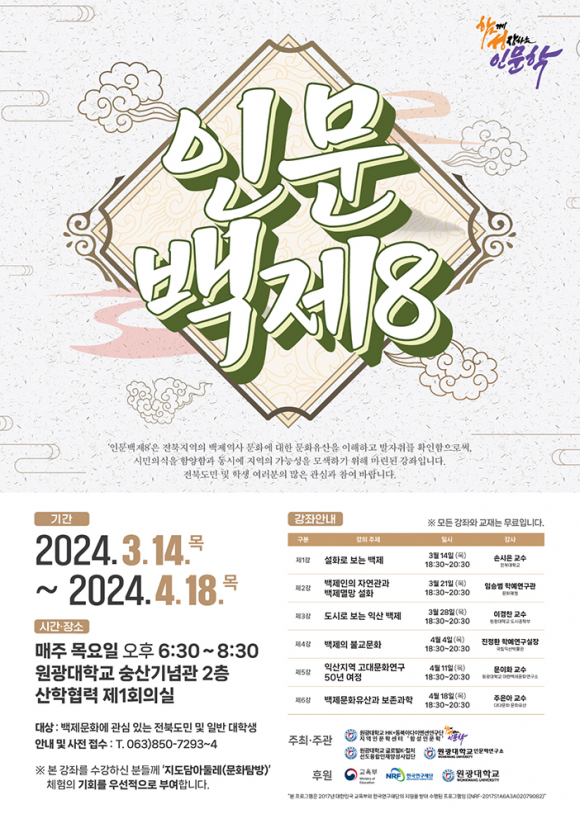 ¿ø±¤´ëÇб³(ÃÑÀå ¹Ú¼ºÅÂ) HK+Áö¿ªÀι®Çм¾ÅÍ´Â 3¿ù 14ÀϺÎÅÍ 4¿ù 18ÀϱîÁö Àι®°Á ¡®Àι®¹éÁ¦8¡¯À» ±³³» ¼þ»ê±â³ä°ü »êÇÐÇù·Â Á¦1ȸÀǽǿ¡¼ ÁøÇàÇÑ´Ù°í ¹àÇû´Ù.