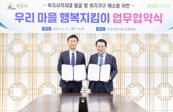 ÀÍ»ê½Ã´Â ÀÌ´Þ 12ÀÏ ÀÍ»ê½Ãû ¼ÒȸÀǽǿ¡¼ CU ÆíÀÇÁ¡¸¦ °ü¸®ÇÏ´Â BGF¸®Å×ÀÏ ÀüºÏÁö¿ªºÎ(´ëÇ¥ ÀÌÁ¾´ë)¿Í º¹ÁöÀ§±â°¡±¸ ¹ß±¼À» À§ÇÑ '¿ì¸® ¸¶À» ÇູÁöÅ´ÀÌ' ¾÷¹«Çù¾à(MOU)À» ü°áÇß´Ù.