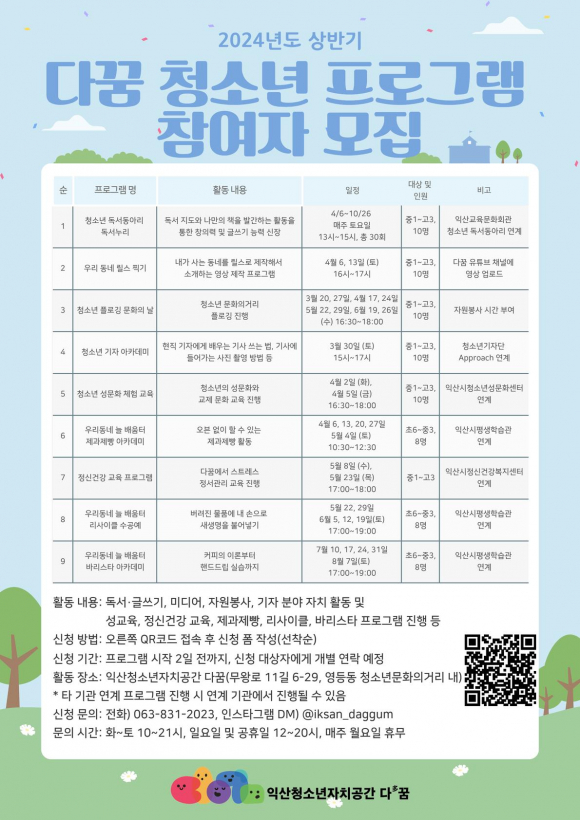 Âü¿©ÀÚ´Â ¼±Âø¼ø ¸ðÁýÀ̸ç, ÀÚ¼¼ÇÑ ³»¿ëÀº ´Ù²Þ 2024 »ó¹Ý±â û¼Ò³â Ȱµ¿ ÇÁ·Î±×·¥ À¥Æ÷½ºÅ͸¦ ÂüÁ¶ÇÏ¸é µÈ´Ù./È«µ¿±â ±âÀÚ |  | | | ¨Ï ÀÍ»ê½Å¹® | |