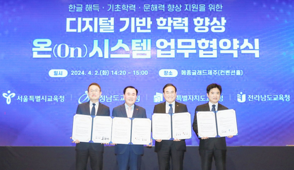 ÀüºÏ±³À°Ã»Àº ÀÌ´Þ 2ÀÏ Á¦ÁÖ ¸ÞÁ¾±Û·¡µåÈ£ÅÚ¿¡¼ Ãæ³²±³À°Ã»°ú ¡®µðÁöÅÐ ±â¹Ý ÇзÂÇâ»ó ¿Â(On)½Ã½ºÅÛ¡¯µµÀÔÀ» À§ÇÑ ¾÷¹«Çù¾àÀ» ü°áÇß´Ù.