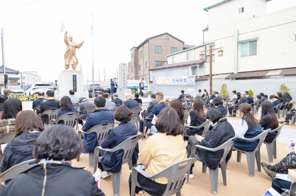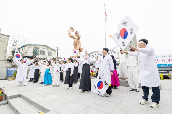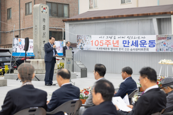 Á¤ÇåÀ² ÀÍ»ê½ÃÀåÀº "¹ÎÁ·ÀÇ µ¶¸³°ú ÀÚÁ¸À» À§ÇÑ ¾Ö±¹Áö»ç¿Í ¼ø±¹¼±¿ÀÇ ¼þ°íÇÑ È£±¹ Á¤½Å¿¡ °æÀǸ¦ Ç¥ÇÑ´Ù"¸ç "105³â Àü Çϳª µÈ ÈûÀ» º¸¿©ÁØ ¼±Á¶µéó·³ ½Ã¹Î ¸ðµÎÀÇ ¿Á¤°ú ¿ª·®À» Çѵ¥ ¸ð¾Æ ´ëÇѹα¹ Á߽ɵµ½Ã·Î ºñ»óÇÏ´Â ÀÍ»ê½Ã°¡ µÇ±æ ¼Ò¸ÁÇÑ´Ù"°í ¸»Çß´Ù.