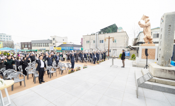 ÀÍ»ê½Ã°¡ ÁÖ°üÇϰí ÀÍ»ê4.4¸¸¼¼¿îµ¿±â³ä»ç¾÷ȸ(ȸÀå Àü¿µÃ¶)°¡ ÁÖÃÖÇÑ À̳¯ ±â³ä½ÄÀº ÀüÃá½Ä ÀÍ»êÇ×Àϵ¶¸³¿îµ¿±â³ä°ü °Ç¸³ÃßÁøÀ§¿øÀåÀÇ È¯¿µ»ç¸¦ ½ÃÀÛÀ¸·Î Àü¿µÃ¶ ȸÀåÀÇ ´ëȸ»ç¿Í µ¶¸³¼±¾ð¹® ³¶µ¶¡¤±â³ä»ç ¼øÀ¸·Î ÁøÇàµÆ´Ù.