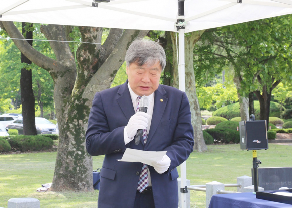 |  | | | ¡è¡è ¿ø±¤´ë ¹Ú¼ºÅ ÃÑÀåÀÌ °³½Ä»ç¸¦ Çϰí ÀÖ´Ù. | | ¨Ï ÀÍ»ê½Å¹® | | °³½Ä»ç¸¦ ÅëÇØ ¹Ú¼ºÅ ÃÑÀåÀº ¡°±× ½Ã´ëÀÇ ºÎ¸§¿¡ ±â²¨ÀÌ ÀÀÇϽŠ´ç½ÅµéÀÇ ±× ±â¹éÀº Áö±ÝÀ» »ì¾Æ°¡´Â ¿ì¸®¿¡°Ô ¿ë±âÀÇ Ç¥»óÀ¸·Î ¿µ¿øÈ÷ ±â¾ïµÉ °Í¡±À̶ó°í ¸»Çß´Ù.