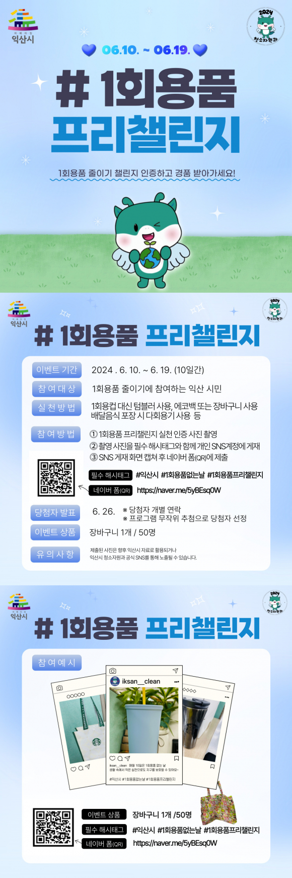 Âü¿© ¹æ¹ýÀº 1ȸ¿ëǰ ´ë½Å ÅÒºí·¯, Àå¹Ù±¸´Ï, ´Ùȸ¿ë±â µîÀ» »ç¿ëÇÏ´Â ¸ð½ÀÀ» Çʼö ÇØ½ÃÅÂ±×¿Í ÇÔ²² °³ÀÎ »çȸ°ü°è¸Á¼ºñ½º(SNS)¿¡ °ÔÀçÇϰí, °Ô½Ã¹°À» ¿Â¶óÀÎÀ¸·Î Á¦ÃâÇÏ¸é µÈ´Ù.