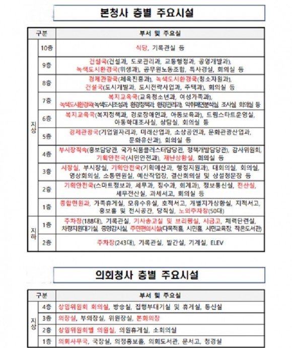 ÀÌ ¹Û¿¡µµ Ãþº° ÁÖ¿ä ½Ã¼³·Î ¡â2Ãþ ±âȹ¾ÈÀü±¹ ¡â3Ãþ ½ÃÀå½Ç¡¤ºÎ½ÃÀå½Ç¡¤±âȹ¾ÈÀü±¹ ¡â4Ãþ ºÎ½ÃÀå Á÷¼ÓºÎ¼¡¤Àç³»óȲ½Ç¡¤°æÁ¦°ü±¤±¹ ¡â5Ãþ °æÁ¦°ü±¤±¹ ¡â6Ãþ º¹Áö±³À°±¹ ¡â7Ãþ º¹Áö±³À°±¹¡¤ ³ì»öµµ½Ãȯ°æ±¹ ¡â8Ãþ ³ì»öµµ½Ãȯ°æ±¹¡¤°Ç¼³±¹ ¡â9Ãþ °Ç¼³±¹ ¡â10Ãþ ½Ä´ç µîÀÌ Á¶¼ºµÈ´Ù.