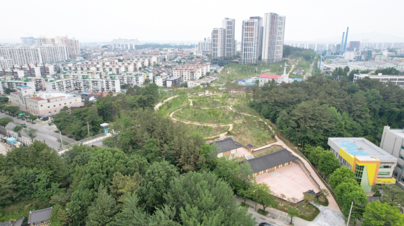 ¸¶µ¿°ø¿øÀº À§¿¡¼ ¾Æ·¡·Î ±æÂßÇÑ ¸ð¾çÀ» À¯ÁöÇÏ´Ù ¿À¸§´Ù¸®¸¦ °Ç³Ê¸é ¤µÀÚ ÇüÅ·Π³ª´µ¾î ¿ÞÂÊÀ¸·Î ¿¬Àå 1.5§° ±æÀÌÀÇ ±â´Ù¶õ »êÃ¥±æ°ú ½£ÀÌ, ¿À¸¥ÂÊÀ¸·Î ´ë±Ô¸ð Å״ϽºÀåÀÌ ÀÚ¸®ÇÑ´Ù.