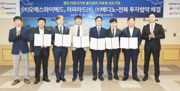 ÇãÀü ÀÍ»ê½Ã ºÎ½ÃÀåÀº "Áٱ⼼Æ÷ Ä¡·áÁ¦ °³¹ß ºÐ¾ß Àü¹® ±â¾÷ÀÎ ¸Þµð³ë°¡ Àͻ꿡 ÅõÀÚ¸¦ °áÁ¤ÇØ Áֽе¥ °¨»çµå¸°´Ù"¸ç "À̹ø ÅõÀÚ¸¦ ÅëÇØ ¿ì¸®½ÃÀÇ Çٽɻç¾÷ÀÌÀÚ ¹Ì·¡¸Ô°Å¸® »ê¾÷ÀÎ ¹ÙÀÌ¿À»ê¾÷ÀÇ °æÀï·ÂÀ» ³ôÀ̴µ¥ Å©°Ô ±â¿©ÇÒ °ÍÀ¸·Î ±â´ëÇÑ´Ù"°í ¹àÇû´Ù./È«µ¿±â ±âÀÚ