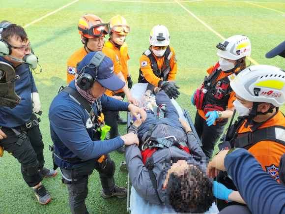 119 Á¾ÇÕ»óȲ½Ç(¼¼Á¾)ÀÇ ±¸Á¶ ÇùÁ¶ ¿äûÀ» Á¢¼ö¹ÞÀº »ê¸²Ã» Á߾ӻ긲Àç³»óȲ½ÇÀº »ç°í ¹ß»ýÁöÁ¡À¸·ÎºÎÅÍ 20¿©km ¶³¾îÁø ÀÍ»ê»ê¸²Ç×°ø°ü¸®¼ÒÀÇ »ê¸²Ç×°ø±¸Á¶´ë¸¦ Áï½Ã Ã⵿½ÃÄÑ ¿îÀå»ê(¸íµµºÀ)¿¡¼ ȯÀÚ¸¦ ½Å¼ÓÇÏ°í ¾ÈÀüÇÏ°Ô ±¸Á¶ÇØ Áø¾È°ø¼³¿îµ¿Àå¿¡¼ 119 ±¸±Þ´ë¿¡ ÀΰèÇß´Ù.