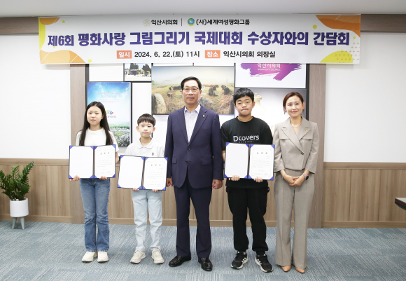 ÀÍ»ê½ÃÀÇȸ ÃÖÁ¾¿À ÀÇÀåÀº ÀÍ»ê½ÃÀå¾ÖÀο¬ÇÕȸ(ȸÀå Á¤º´Çö)¿Í IWPG ¼¼°è¿©¼ºÆòȱ׷ì(ÁöºÎÀå Àü¿µ¼±)ÀÌ °³ÃÖÇÑ ¡®Á¦6ȸ ÆòÈ»ç¶û ±×¸²±×¸®±â ±¹Á¦´ëȸ¡¯ ¼ö»óÀÚ¿Í °£´ãȸ¸¦ 6¿ù 21ÀÏ ÀÇÀå½Ç¿¡¼ °¡Á³´Ù.