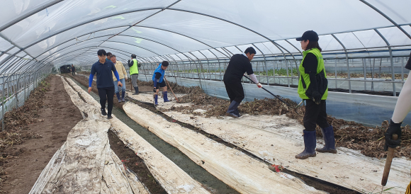 °ü³» ³óÃàÇù ¹× Áß¾Óȸ, °è¿»ç ÀÓÁ÷¿ø 300¿©¸íÀÌ Âü¿©ÇÏ´Â Àϼյ½±â¿¡´Â ÁýÁßÈ£¿ì·Î ħ¼öµÈ ÇϿ콺 ³»ºÎ ½Ã¼³¹° ö°Å ¹× ³óÀÛ¹° Á¤¸®¿¡ ±¸½½¶¡À» Èê·È´Ù.