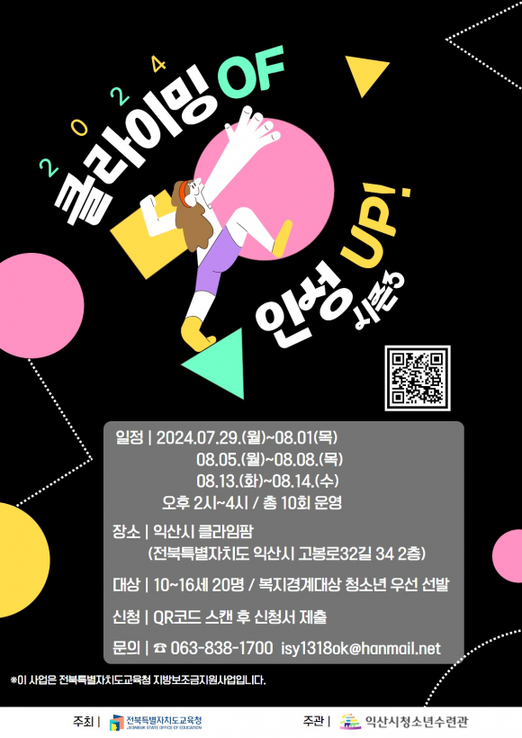 |  | | | ¨Ï ÀÍ»ê½Å¹® | | ÀÍ»ê½Ãû¼Ò³â¼ö·Ã°ü(±èÀ±±Ù °üÀå)Àº ¿©¸§¹æÇÐÀ» ¸Â¾Æ ÀüºÏƯº°ÀÚÄ¡µµ±³À°Ã»ÀÇ Áö¹æº¸Á¶±ÝÁö¿ø»ç¾÷À¸·Î ¡®2024 Ŭ¶óÀÌ¹Ö OF Àμº UP ½ÃÁð3¡¯ ÇÁ·Î±×·¥À» ¿î¿µÇÑ´Ù°í ¹àÇû´Ù.