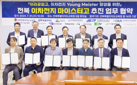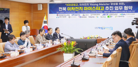 7¿ù 31ÀÏ ÀüºÏµµ±³À°Ã» ȸÀǽǿ¡¼ ±èÁ¾ÈÆ ÀüºÏƯº°ÀÚÄ¡µµ °æÁ¦ºÎÁö»ç, Á¤ÇåÀ² ÀÍ»ê½ÃÀå, ±èÁÖ¿µ À̸®°ø¾÷°í ±³Àå, À̱ÔÅà (Àç)ÀüºÏÅ×Å©³ëÆÄÅ© ¿øÀå, ÃÖÁ¾¼ Çѱ¹¹èÅ͸®»ê¾÷Çùȸ º»ºÎÀå µîÀÌ Âü¼®ÇÑ °¡¿îµ¥ À̸®°ø¾÷°í ÀÌÂ÷ÀüÁö ¸¶À̽ºÅͰí ÃßÁø ¾÷¹«Çù¾à(MOU)ÀÌ Ã¼°áµÆ´Ù.