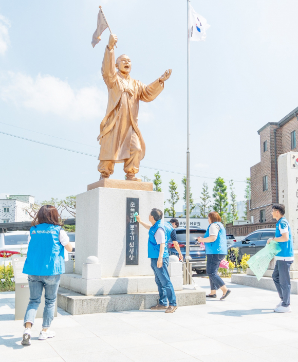 Àͻ굵½Ã°ü¸®°ø´Ü(ÀÌ»çÀå ½Éº¸±Õ¡¤Àͻ굵½Ã°ø´Ü)ÀÌ ±¤º¹ÀýÀ» ¸Â¾Æ Áö¿ªÀÇ ¿ª»çÀû Àǹ̰¡ ±íÀº Àå¼ÒÀÎ Àͻ꿪 ±¤Àå ÆòÈÀǼҳà»ó°ú ³²ºÎ½ÃÀå³» 4.4¸¸¼¼¿îµ¿¼ø±¹¿»çºñ µîÀ» ¹æ¹®ÇØ È¯°æÁ¤ºñ¸¦ ½Ç½ÃÇÏ¸ç ¼þ°íÇÑ Á¤½ÅÀ» µÇ»õ°å´Ù.