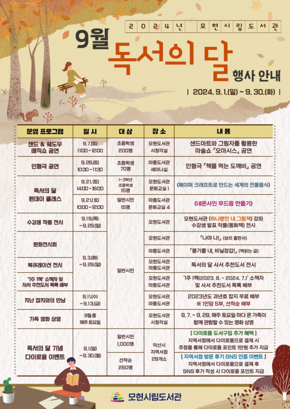 9¿ù 28ÀÏ¿¡´Â ¸¶µ¿µµ¼°ü¿¡¼ ÀÎÇü±Ø ¡®Ã¥À» ¸Ô´Â µµ±úºñ¡¯ °ø¿¬À» ¼±º¸¿© ¾î¸°À̵鿡°Ô Áñ°Å¿òÀ» Á¦°øÇÒ ¿¹Á¤ÀÌ´Ù.