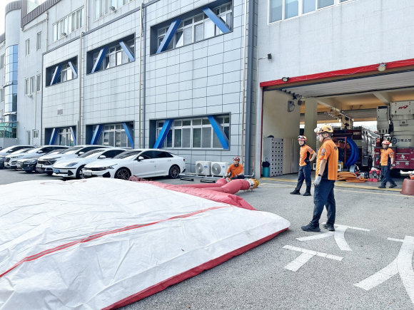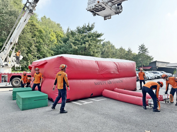 ÀÌ·± °¡¿îµ¥ ÀÍ»ê¼Ò¹æ¼´Â °íÃþ °Ç¹° ÈÀç µî ±ä±Þ »óȲ ½Ã ÀθíÇÇÇØ ¹× Ãß¶ô»ç°í ¹æÁö¸¦ À§ÇØ ¿¡¾î¸ÅÆ® ¼³Ä¡ ¼÷´Þ ÈÆ·ÃÀ» 8¿ù 23ÀÏ ½Ç½ÃÇß´Ù.