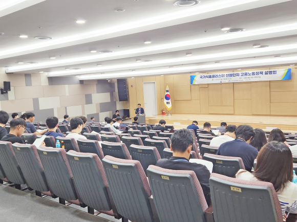°í¿ë³ëµ¿ºÎ ÀÍ»êÁöû(ÁöûÀå ÀüÇöö)¡¤Çѱ¹»ê¾÷¾ÈÀüº¸°Ç°ø´Ü ÀüºÏ¼ºÎÁö»ç(Áö»çÀå ÀÌ»ó¿)´Â 8¿ù 27ÀÏ ¿ÀÈÄ Çѱ¹½Äǰ»ê¾÷Ŭ·¯½ºÅÍÁøÈï¿ø(ÀÌ»çÀå ±è¿µÀç)°ú ÇÔ²² ÀÍ»ê½Ã ¿Õ±Ã¸é ¼ÒÀç ±¹°¡½ÄǰŬ·¯½ºÅÍ »ê¾÷´ÜÁö ÀÔÁÖ±â¾÷µéÀ» ´ë»óÀ¸·Î ÁÖ¿ä °í¿ë³ëµ¿Á¤Ã¥ ¼³¸íȸ¸¦ °³ÃÖÇß´Ù.