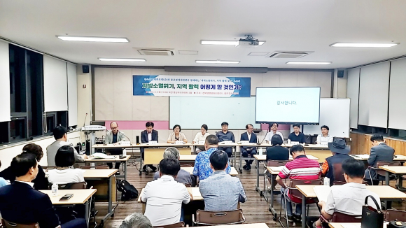 Åä·Ðȸ´Â ÀüºÏ»ý¸íÆòÈÆ÷·³(´ëÇ¥ ±èÅÃõ¡¤¹Ú¸Í¼ö)°ú ÁÁÀºÁ¤Ä¡½Ã¹Î³Ý(´ëÇ¥ ¼Õ¹®¼±)ÀÌ °øµ¿ ÁÖÃÖÇØ Áö¹æ ¼Ò¸ê À§±â ±Øº¹ ¹æ¾È¿¡ ´ëÇÑ ½ÇÁúÀûÀÎ ³íÀǸ¦ À§ÇØ ¸¶·ÃµÆ´Ù.