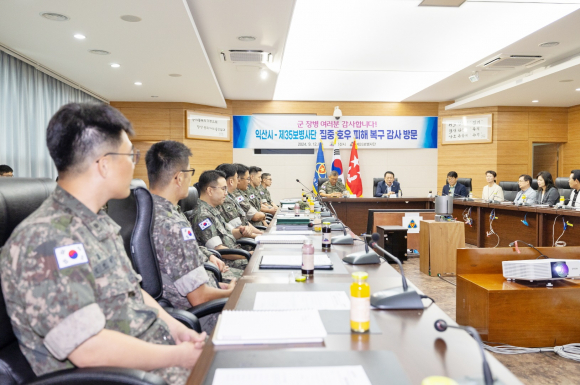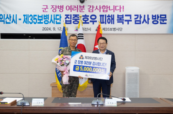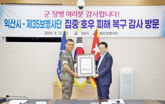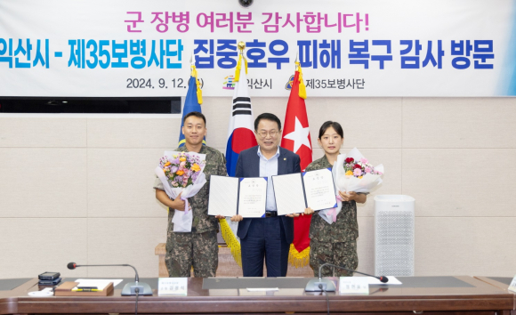 Á¤ÇåÀ² ÀÍ»ê½ÃÀåÀº ÀÌ´Þ 12ÀÏ Áö¿ª ¹æÀ§»ç´ÜÀÎ Á¦35º¸º´»ç´ÜÀ» ¹æ¹®ÇØ ÀÍ»ê½Ã ¼öÇØº¹±¸¿¡ ±¸½½¶¡À» Èê·È´ø ±º À庴µé¿¡°Ô ±íÀº °¨»çÀÇ ¸¶À½À» ÀüÇß´Ù.