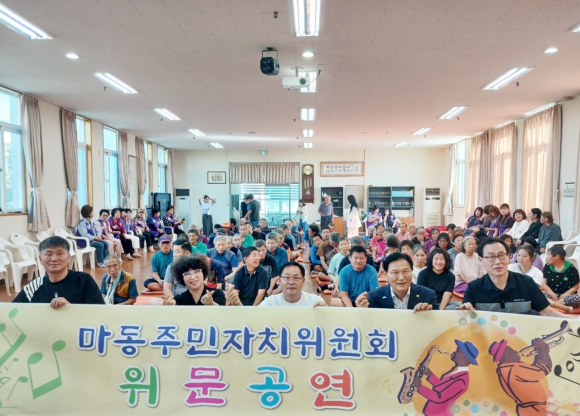 À̳¯ ¸¶µ¿ ÁÖ¹ÎÀÚÄ¡À§¿øµéÀº ¾Ç±â¿¬ÁÖ¡¤³ë·¡°ø¿¬ µî Àç´É±âºÎ¸¦ ÅëÇØ Èï°Ü¿î ½Ã°£À» ¼±»çÇß´Ù. ¾Æ¿ï·¯ Á¤¼º²¯ ÁغñÇÑ À§¹®Ç°À» Àü´ÞÇÏ¸ç µû¶æÇÑ Á¤À» ³ª´³´Ù.