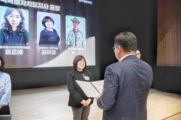 ÀüºÏƯº°ÀÚÄ¡µµÁö»ç ǥâÀ» ¹ÞÀº ±è¹Ì°æ »ç¹«Ã³ÀåÀº ±¹Á¦¼ºÃëÆ÷»óÁ¦¿Í Àڱ⵵ÀüÆ÷»óÁ¦ Æ÷»ó´ã´ç°üÀ¸·Î, Æò¼Ò û¼Ò³âµéÀÌ ²ÞÀ» ã°í, û¼Ò³â ¼ºÀå Áö¿ø¿¡ ±â¿©ÇÑ °ø·Î¸¦ ÀÎÁ¤¹Þ¾Æ ¼ö»óÇÏ°Ô µÇ¾ú´Ù.