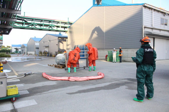´©ÃâµÈ ¹°ÁúÀÌ °øÀå ³» ´Ù¸¥ ÈÇй°Áú°ú Á¢ÃËÇÒ °æ¿ì 2Â÷ Æø¹ßÀÇ À§Ç輺ÀÌ ÀÖ´Ù´Â °æ°í°¡ ³»·ÁÁ³°í, ÈÇб¸Á¶´ë´Â ¹«ÀÎ ¹æ¼öÆ÷¸¦ µ¿¿øÇØ ¹°ÁúÀ» Â÷´ÜÇϸç ÈÀç Áø¾Ð°ú µ¿½Ã¿¡ ¹æÁ¦ ÀÛ¾÷À» ¼öÇàÇß´Ù.