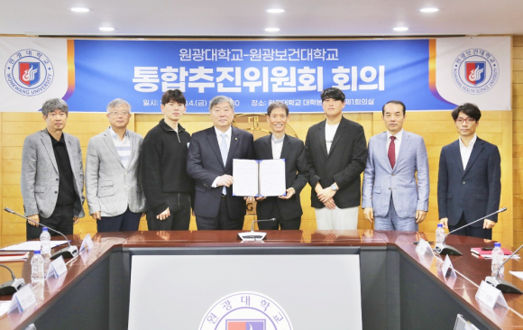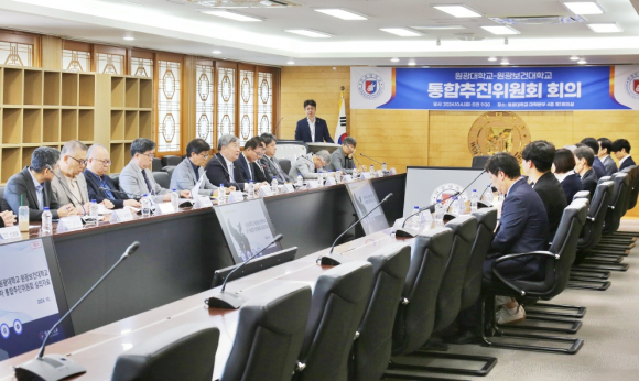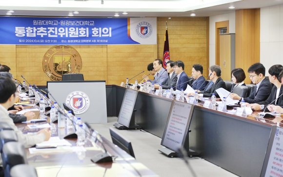 ¿ø±¤´ëÇб³(ÃÑÀå ¹Ú¼ºÅÂ)¿Í ¿ø±¤º¸°Ç´ëÇб³(ÃÑÀå ¹éÁØÈì)´Â ±Û·ÎÄôëÇÐ30 ¼±Á¤¿¡ µû¸¥ ´ëÇÐ ÅëÇÕ ÃßÁøÀ» À§ÇÑ ¡®¿ø±¤´ë-¿ø±¤º¸°Ç´ë ÅëÇÕÃßÁøÀ§¿øÈ¸¡¯ 2Â÷ ȸÀǸ¦ ÀÌ´Þ 4ÀÏ ¿ø±¤´ë º»°ü ȸÀǽǿ¡¼ °³ÃÖÇß´Ù.