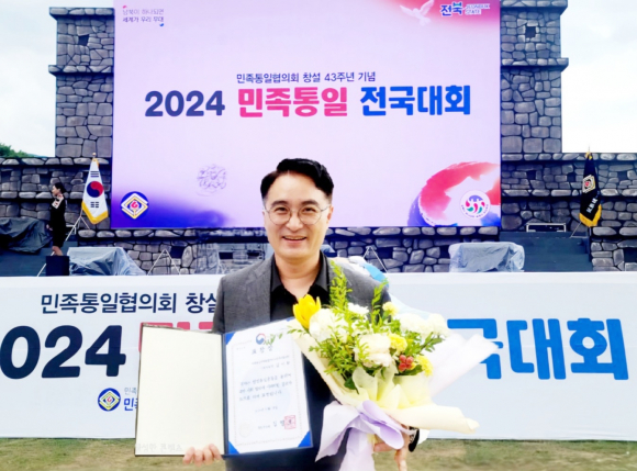 (»ç)¹ÎÁ·ÅëÀÏÁß¾ÓÇùÀÇȸ â¼³ 43ÁÖ³âÀ» ±â³äÇÏ´Â ¡®2024 ¹ÎÁ·ÅëÀÏ Àü±¹´ëȸ¡¯°¡ ÀÌ´Þ 14ÀÏ ÀüºÏ °íâ ¸ð¾ç¼º °ø¿ø¿¡¼ ¿¸° °¡¿îµ¥ ÀÍ»ê½ÃÇùÀÇȸ ±è±âȯ ±âȹÀ§¿øÀå(50¡¤ÃáÆ÷ Áö¿ª¾Æµ¿¼¾ÅÍÀå)ÀÌ ÅëÀϺÎÀå°ü»óÀ» ¼ö»óÇß´Ù.