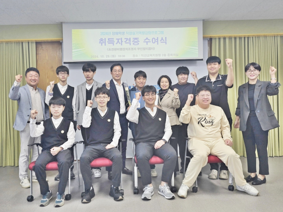 Àͻ걳À°Áö¿øÃ»(±³À°Àå Á¤¼ºÈ¯)Àº 10¿ù 29ÀÏ Àͻ걳À°Áö¿øÃ»¿¡¼ Àå¾ÖÇлý Á÷¾÷½Ç±â¿ª·®°ÈÇÁ·Î±×·¥À» ÅëÇØ Àå¾ÖÇлýµéÀÌ ÃëµæÇÑ ÀÚ°ÝÁõ ¼ö¿©½ÄÀ» ÁøÇàÇß´Ù.
