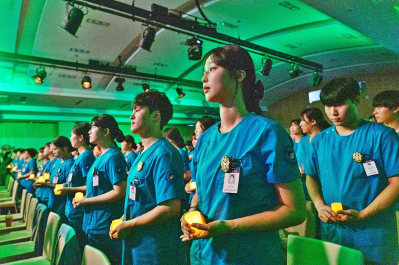 ÁøÀº¿µ °£È£ÇкÎÀåÀº Àλ縻À» ÅëÇØ ¡°³ªÀÌÆÃ°ÔÀÏÀÇ ¼þ°íÇÑ »ý¸í Á¸Áß Á¤½ÅÀ» °¡½¿ ±íÀÌ »õ±â°í, ȯÀÚ °ç¿¡¼ ÁöŰ´Â ¼öÈ£ÀڷμÀÇ ¼Ò¸íÀ» ´ÙÇÒ ¼ö ÀÖµµ·Ï Àμº°ú Àü¹® ¿ª·®À» °®Ã߱⸦ ¹Ù¶õ´Ù¡±¶ó°í ¼±¼»ýµé¿¡°Ô ´çºÎÇß´Ù.