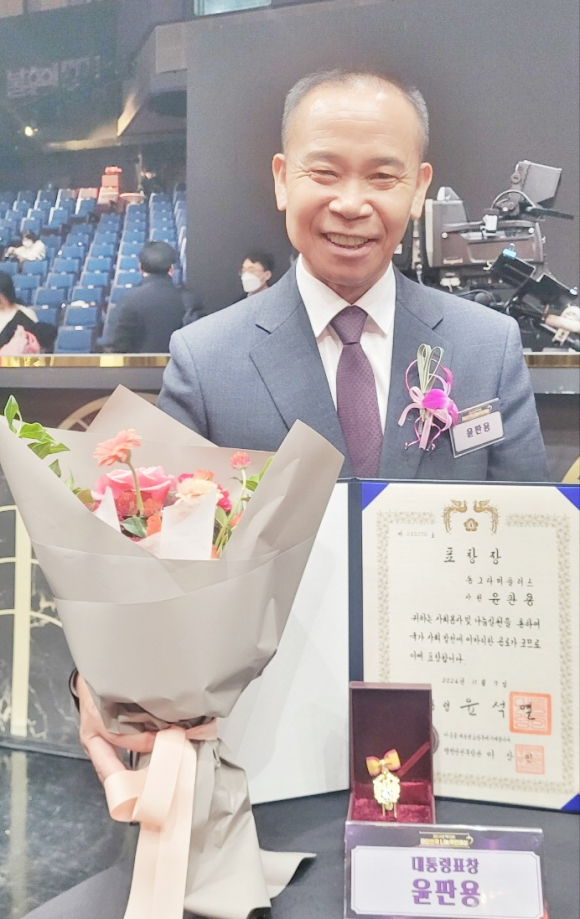 ÀÌ´Þ 7ÀÏ '2024³â ´ëÇѹα¹ ³ª´®±¹¹Î´ë»ó' ´ëÅë·É ǥâÀ» ¼ö»óÇÑ ÀÍ»ê½Ã »ï¼ºµµ °ÅÁÖ À±ÆÇ¿ë ¾¾(65)ÀÇ ¼Ò°¨ÀÌ´Ù.