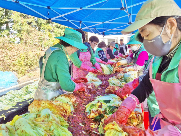 ȸ¿ø 100¿© ¸íÀº Á÷Á¢ ¹ö¹«¸° ±èÄ¡ 1,100Æ÷±â¸¦ °æ·Î´ç°ú Àú¼Òµæ ¼¼´ë µî 350°÷¿¡ Àü´ÞÇÏ¸ç ¾ÈºÎ¸¦ »ìÆñ´Ù.