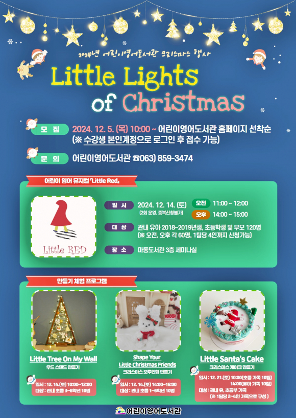 14ÀÏ¿¡´Â ¾î¸°ÀÌ¿µ¾î¹ÂÁöÄà '»¡°£ ¸ðÀÚ(Little Red)'¿Í Å©¸®½º¸¶½º ¿ìµå½ºÅÄµå ¸¸µé±â¡¤¸ð·çÀÎÇü ¸¸µé±â¸¦ ¿î¿µÇÑ´Ù.