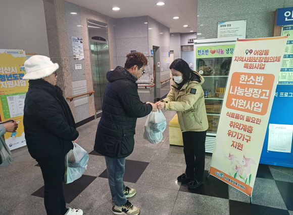 ¡®ÇÑ¼Ò¹Ý ³ª´® ³ÃÀå°í Áö¿ø»ç¾÷¡¯Àº ¸ÅÁÖ 2ȸ À§±â°¡Á¤°ú Ãë¾à°èÃþÀ» ´ë»óÀ¸·Î ÇàÁ¤º¹Áö¼¾ÅÍ¿¡ ±âŹµÈ ¹°Ç°°ú Áö¿ª»çȸº¸ÀåÇùÀÇü°¡ ±¸ÀÔÇÑ ºÎ½ÄÀ» Àü´ÞÇÏ´Â »ç¾÷ÀÌ´Ù. Áö³ÇØ 2,000¿© ¸íÀÇ ÀÌ¿ëÀÚ¿¡°Ô ²ÙÁØÇÑ µµ¿òÀ» Á¦°øÇÑ ¹Ù ÀÖ´Ù.